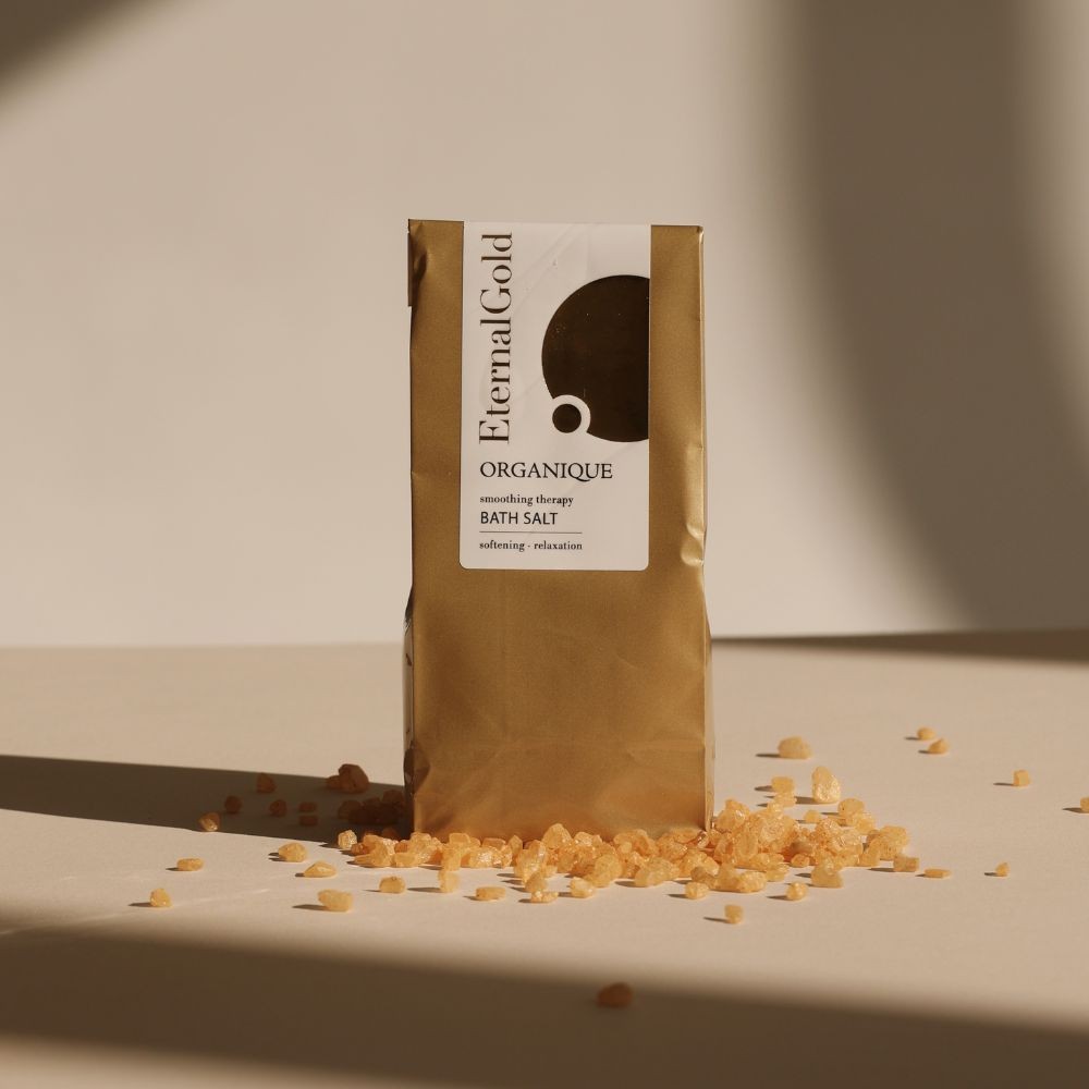 Bath saltA relaxing, fine-grained bath salt which combines cleansing and active care. Recommended for every skin type. Rich in minerals, it strengthens and improves skin condition. The aroma of the Eternal Gold Therapy makes the bath relaxing, while sparkling particles subtly illuminate skin. HOW IT WORKS? smooths and softens skin relaxes gently illuminates skin HOW TO USE? Pour 50-100 g of salt to the bathtub under the stream of warm water. Do not rinse after the bath, only dry your body with a towel. INCI Sodium Chloride, Parfum, Aqua, CI 77891 (Titanium Dioxide), Ci 77489 (Iron Oxide), Ci 77019 (Mica), Limonene