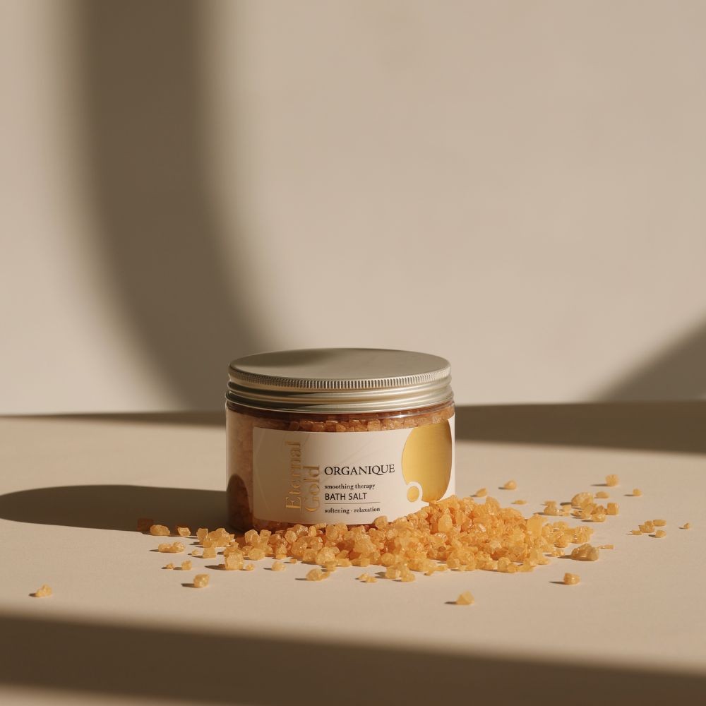 Bath saltA relaxing, fine-grained bath salt which combines cleansing and active care. Recommended for every skin type. Rich in minerals, it strengthens and improves skin condition. The aroma of the Eternal Gold Therapy makes the bath relaxing, while sparkling particles subtly illuminate skin. HOW IT WORKS? smooths and softens skin relaxes gently illuminates skin HOW TO USE? Pour 50-100 g of salt to the bathtub under the stream of warm water. Do not rinse after the bath, only dry your body with a towel. INCI Sodium Chloride, Parfum, Aqua, CI 77891 (Titanium Dioxide), Ci 77489 (Iron Oxide), Ci 77019 (Mica), Limonene